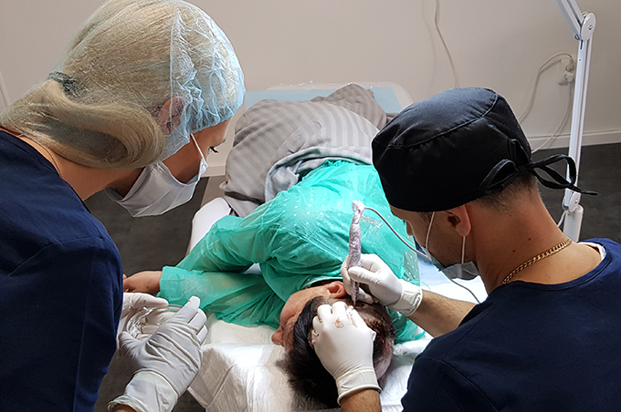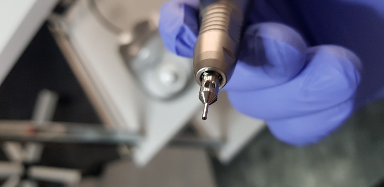 Jedan od najbitnijih koraka kod transplantacije je otvaranje kanala u koje se postavljaju graftovi a mi koristimo safirni sklapel, ultra tanak i oštar, koji uveliko doprinosi transplantaciji bez ožiljaka, i tome da niko ne može da primeti da je koren transplantiran.